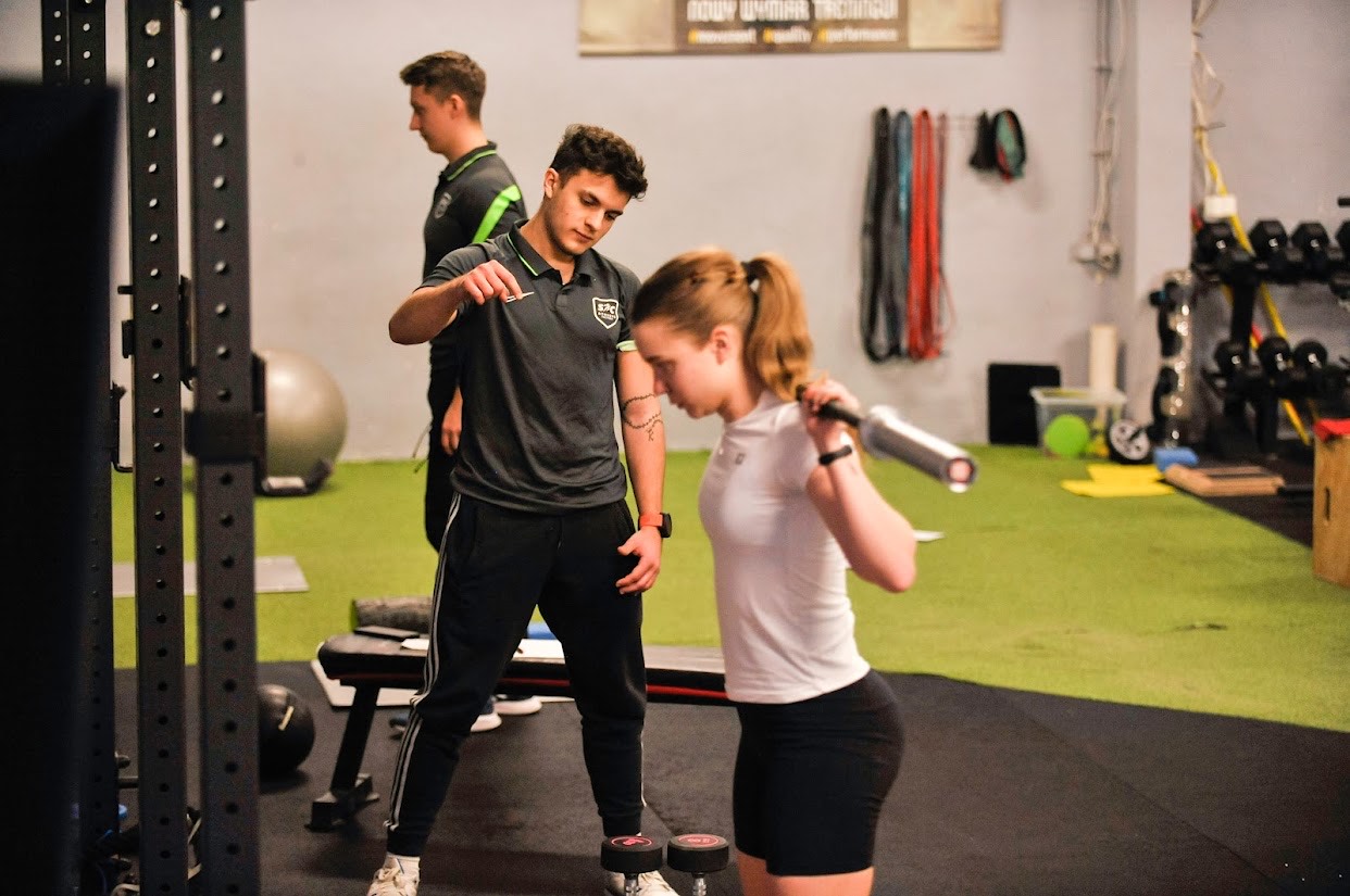 Treningi personalne w naszym studio treningowym prowadzone są według koncepcji SCAF. Koncepcja pozwala na dobór odpowiednich środków treningowych do aktualnego zaawansowania, tak żeby trening był bezpieczny oraz jak najbardziej skuteczny. Treningi personalne prowadzone są dla osób, które chcą rozpocząć swoją przygodę z siłownią jak i dla osób bardziej zaawansowanych. Podczas treningów poprawimy świadomość ciała, popracujemy nad stabilnością, mobilnością, siłą, a także kondycją. Dodatkowo trening ten wpływa na modelowanie sylwetki oraz poprawę postawy ciała. U bardziej zaawansowanych osób, a także u sportowców amatorów wprowadzane są elementy przygotowania motorycznego takie jak technika biegu, technika poruszania, kształtowanie mocy, czy bardziej zaawansowane metody kształtowania kondycji.